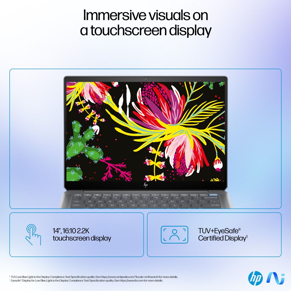 The HP OmniBook Ultra 14-fd0002na Copilot+ PC AMD Ryzen AI 9 365 Laptop 35.6 cm (14″) Touchscreen 2.2K 32 GB LPDDR5x-SDRAM 1 TB SSD Wi-Fi 7 (802.11be) Windows 11 Home Silver delivers premium mobile computing with AI acceleration, exceptional battery life, and sustainable design for professionals and creators who demand both performance and portability.