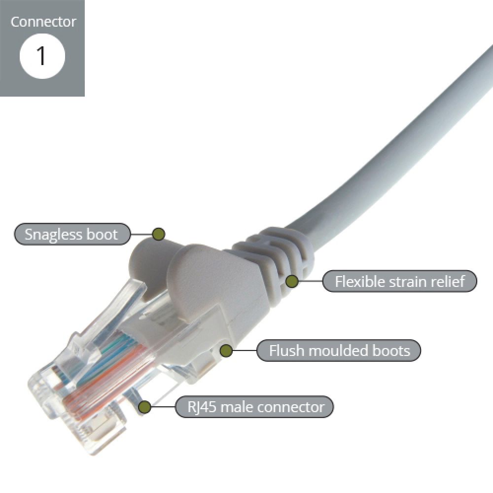 The cable features molded boots and gold-plated contacts. These elements improve connection integrity and physical resilience. The snagless design helps prevent damage during installation. Also, the grey PVC jacket is practical for most environments.