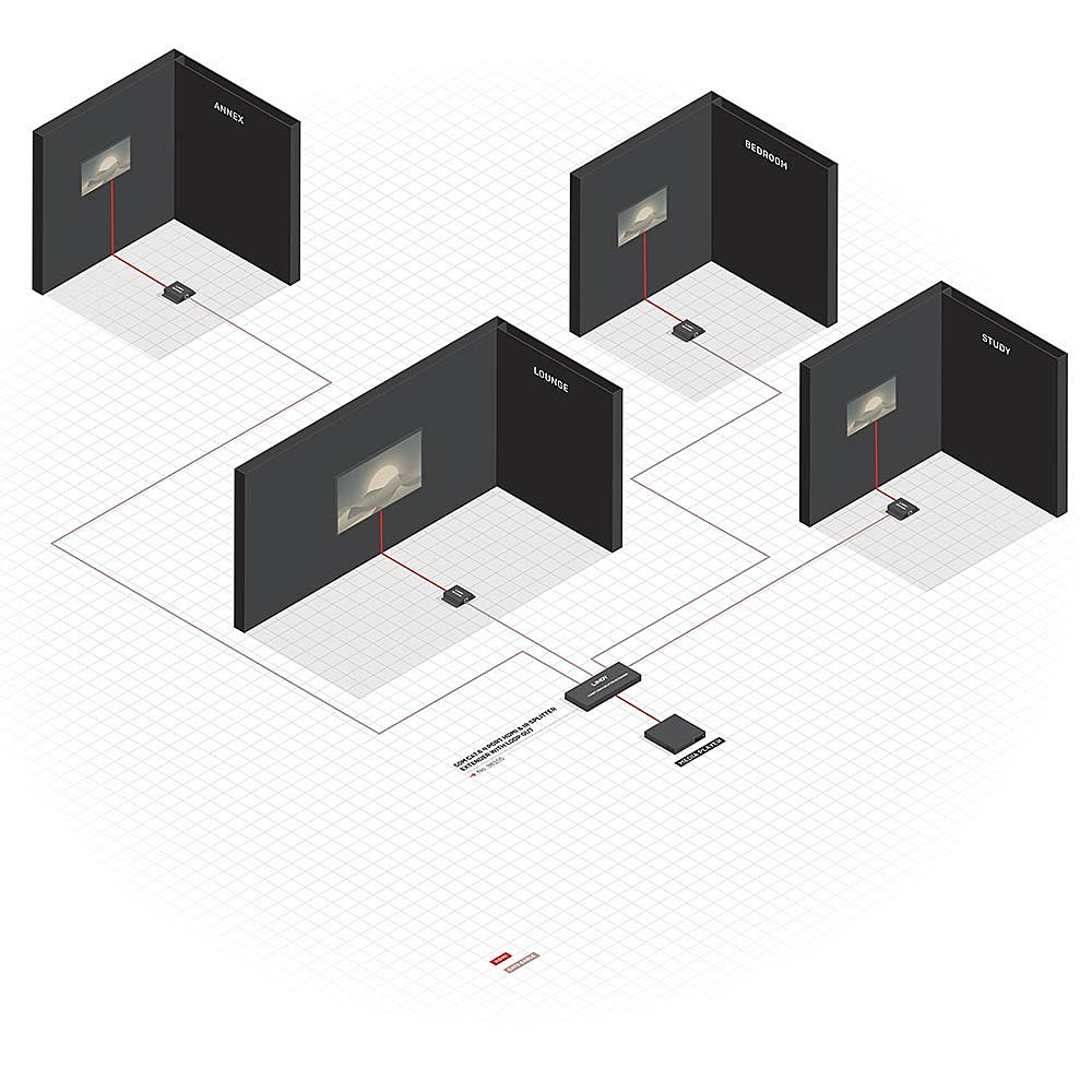 Lindy 70m Cat.6 4 Port HDMI 4K30 and IR Splitter Extender with Loop Out