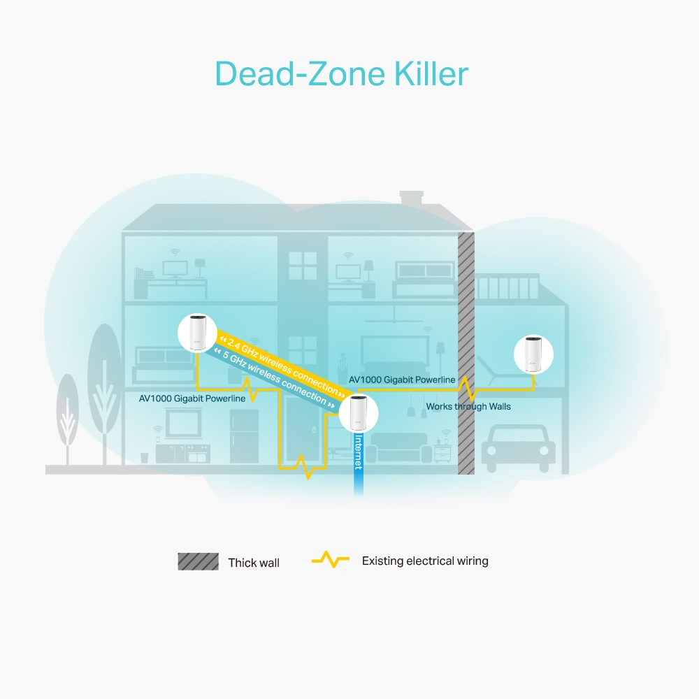 • AC1200 + AV1000 dual-band Wi-Fi plus powerline hybrid system