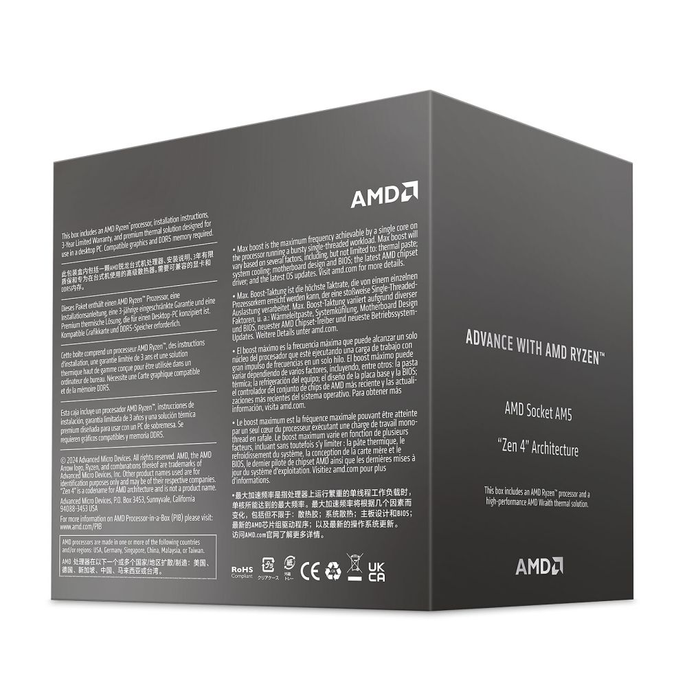 This processor uses the Zen 4 architecture and the Phoenix core. It offers 6 cores and 12 threads for smooth multitasking. Because it supports DDR5 memory, your system stays future-ready. However, it does not include an integrated graphics controller. You will need a dedicated graphics card for video output.