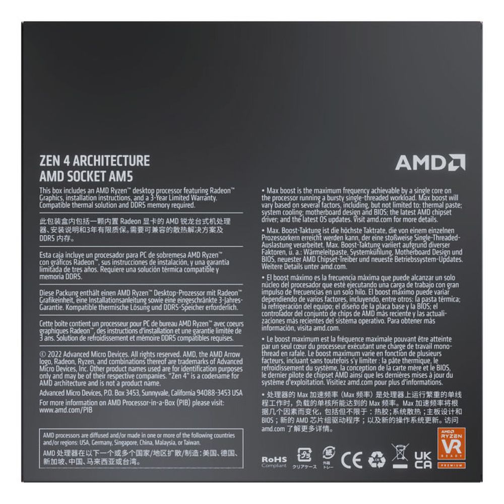 The processor uses the AMD Zen 4 “Raphael” architecture. It is fabricated on a 5 nm process, which helps improve efficiency. Because it reaches 5.4 GHz in turbo mode, it delivers fast response times in games and applications.
