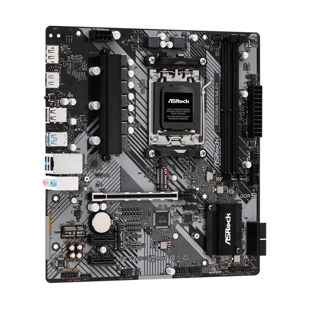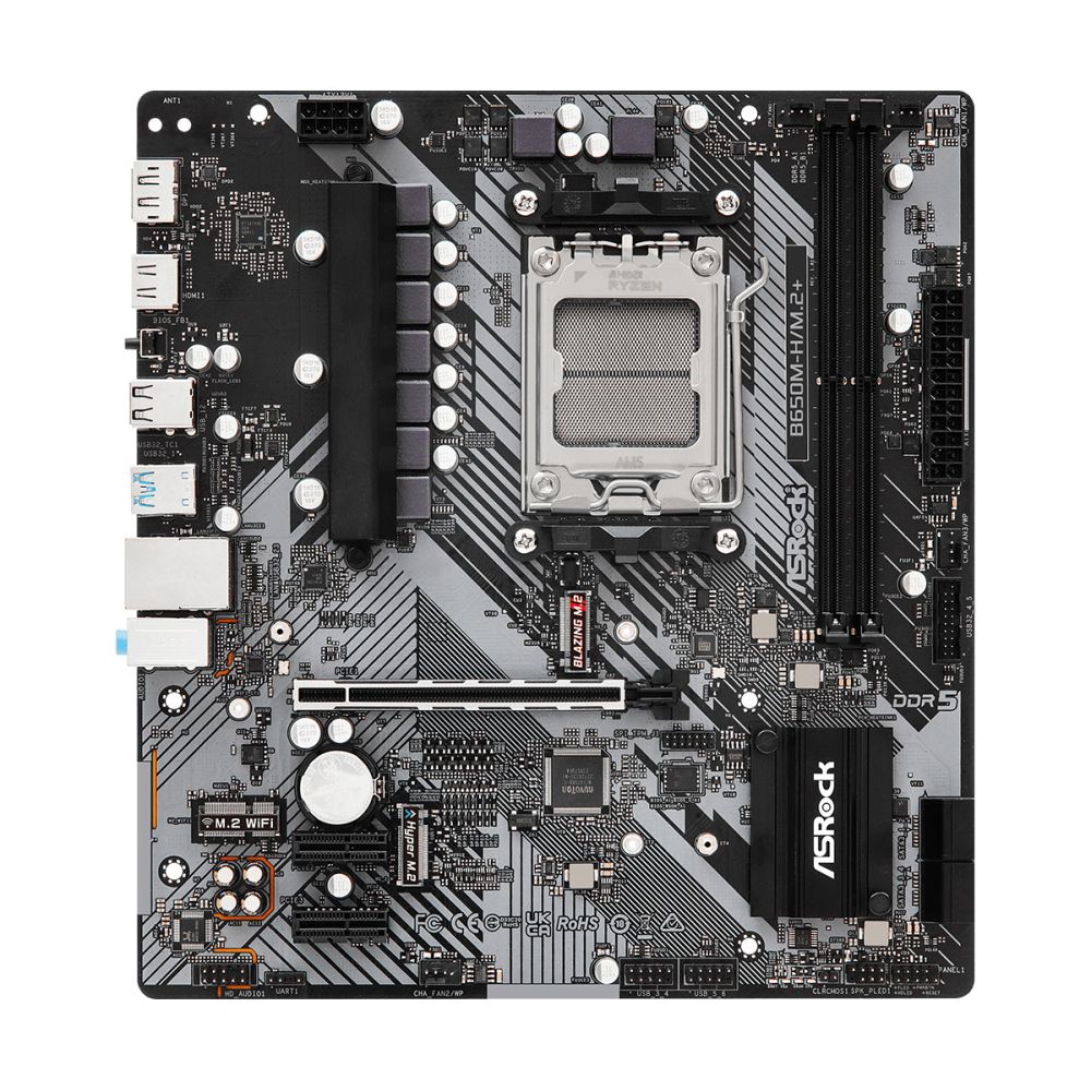 The ASRock B650M-H/M.2+ is a micro ATX motherboard built around the AMD B650 chipset, supporting the latest AMD Ryzen 7000X3D processors on the Socket AM5 platform. Designed for compact builds without sacrificing performance, it offers PCIe 5.0 storage, DDR5 memory support, and robust VRM cooling for stable operation.