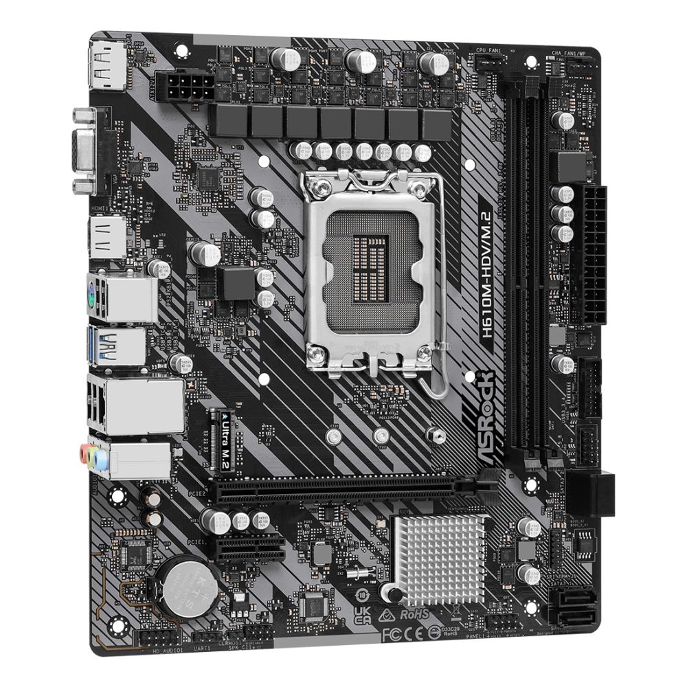 The ASRock H610M-HDV/M.2 R2.0 offers a solid foundation for Intel-based systems where integrated graphics and essential connectivity are priorities. Its micro ATX footprint, reliable power delivery, and multiple display outputs make it well-suited for office PCs, home media setups, and budget-conscious builds. Covered by the standard Manufacturer Warranty.