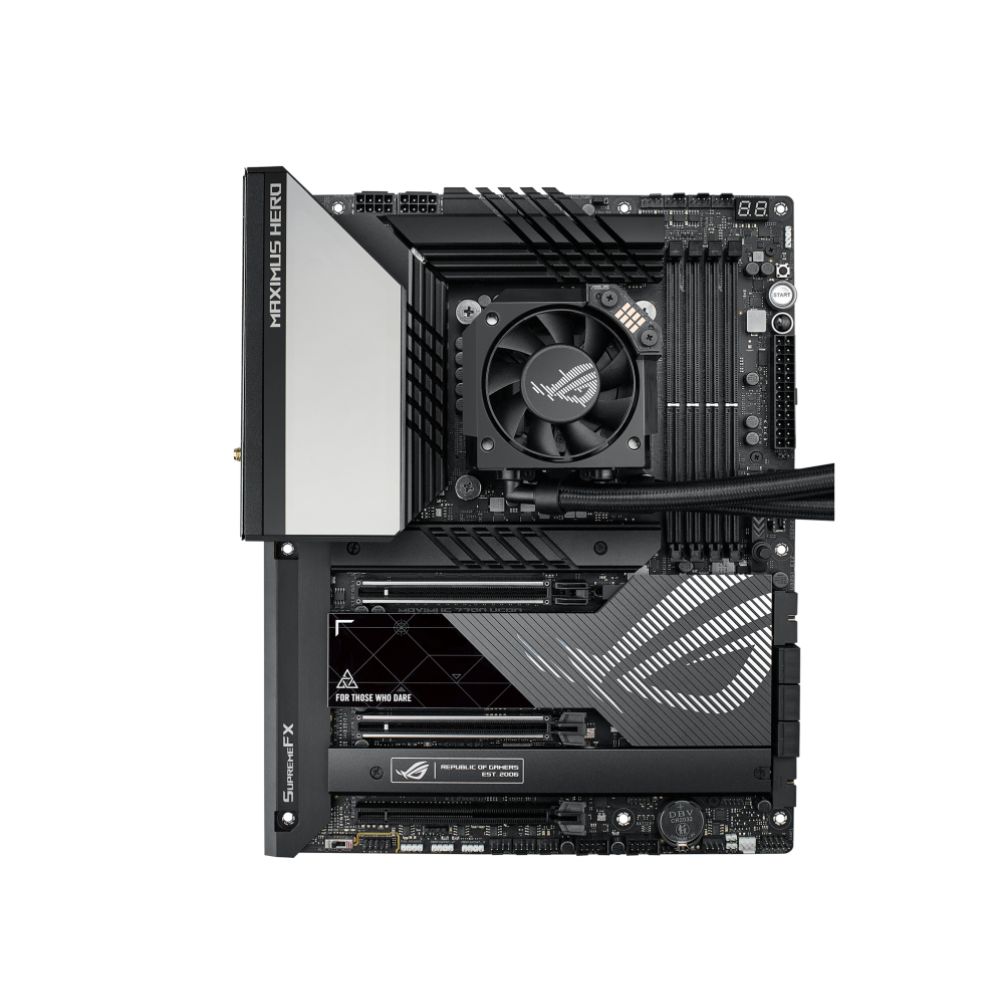 A unique feature of the ROG RYUJIN III is its embedded VRM fan, which uses advanced Axial-tech technology to improve airflow around the motherboard. This dedicated fan can reduce motherboard VRM temperatures by up to 35°C, providing crucial protection for your system’s power delivery components. This is particularly beneficial for overclockers and those pushing their systems to the limit, as it helps maintain system stability under heavy loads.