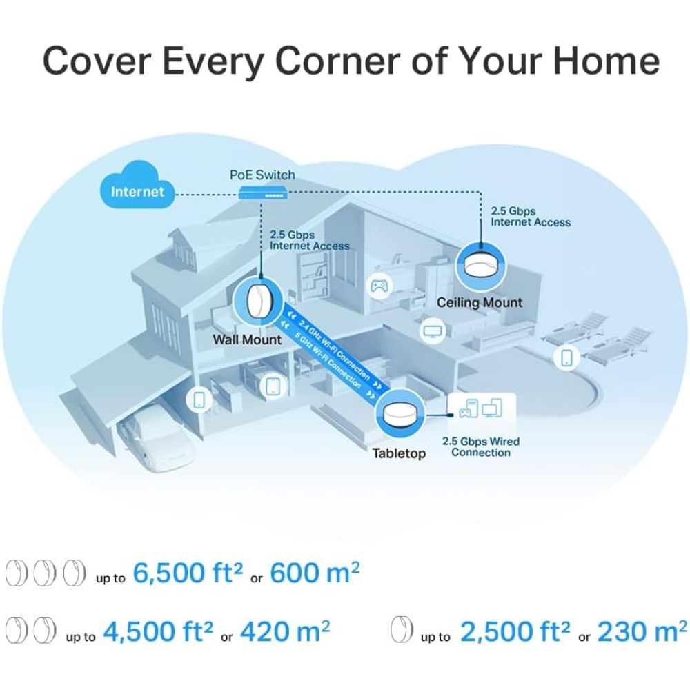 The TP-Link Deco X50-PoE(1-pack) AX3000Mbps Whole Home Mesh WiFi 6 with 1 Pack delivers enterprise-grade Wi-Fi coverage for homes and offices that demand rock-solid connectivity. Designed for multi-device households, this single-unit mesh system uses Power over Ethernet (PoE) for clean, flexible installation without extra power adapters.