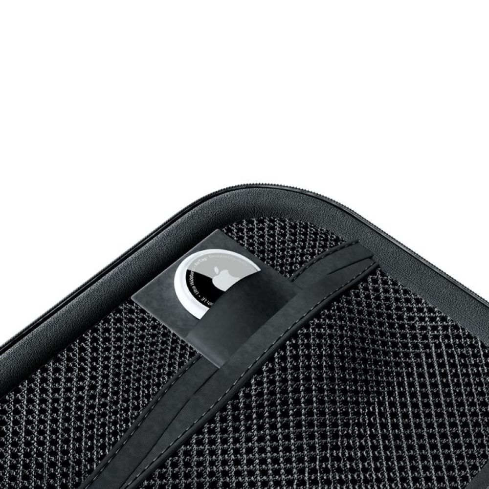 This section details the core construction and fit. The case uses a hardshell design to resist impacts. It maintains a slim profile for easy bag storage. The black finish offers a classic, professional look.
