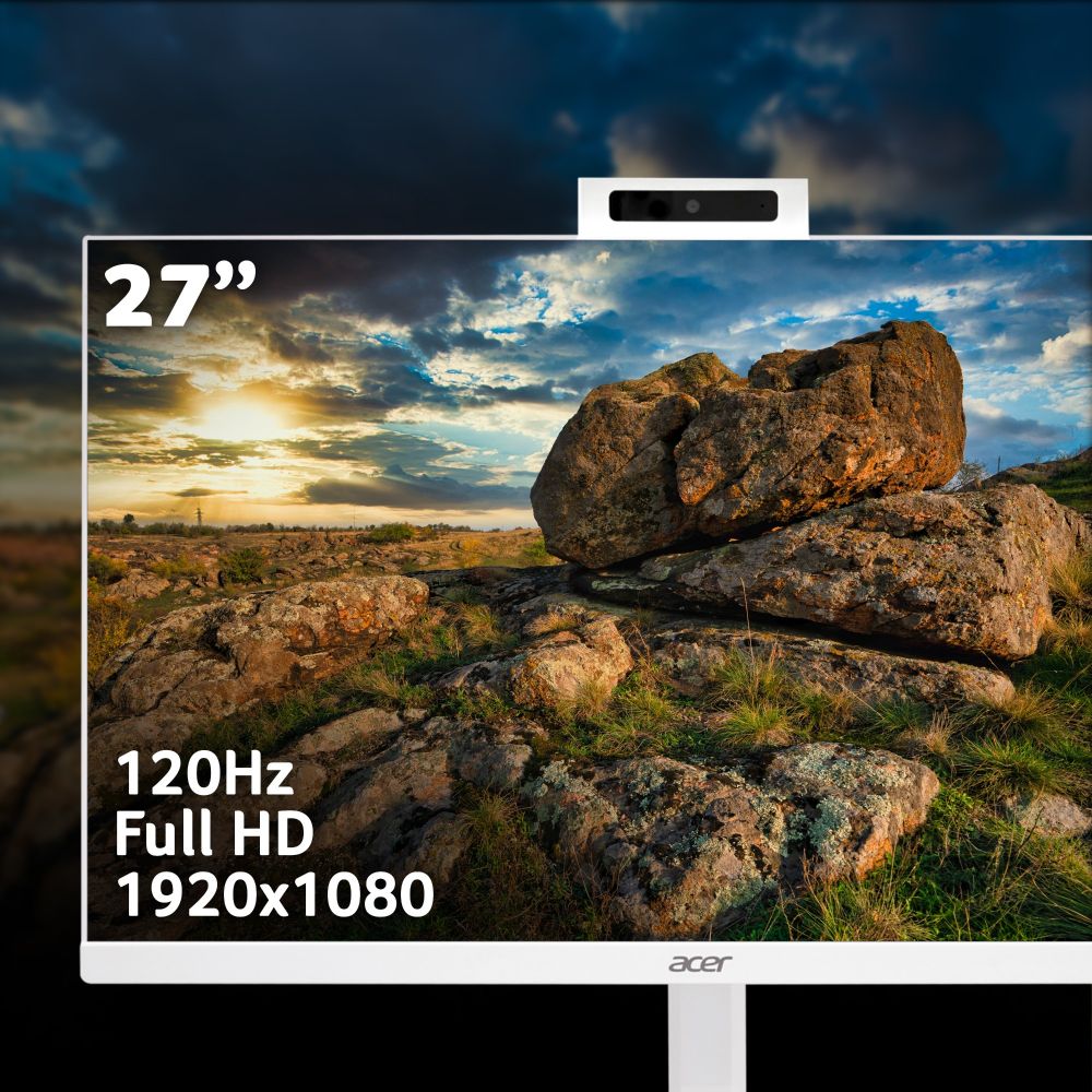 The Acer Aspire C27-A All-in-One Desktop – Intel Core i5-13420H, 8GB, 1TB SSD, Integrated Graphics, 27″ Full HD, Windows 11, White delivers balanced performance in a space-saving design. With its 13th Gen Intel Core processor and 120Hz Full HD display, it suits home offices, students, and everyday computing tasks without the clutter of a traditional tower setup.