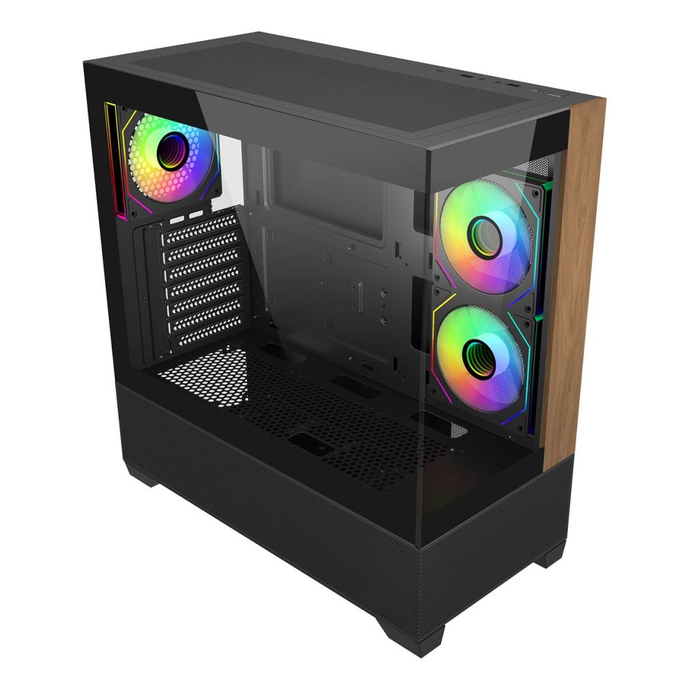 The Cooler Master Elite 690 Wood Midi Tower Black is a mid-tower PC case that blends natural wood aesthetics with high-performance cooling. Designed for gamers and PC builders, it offers a spacious interior, tempered glass panels, and advanced airflow management. Its vertical cooling architecture and ARGB lighting make it a standout choice for both performance and style.