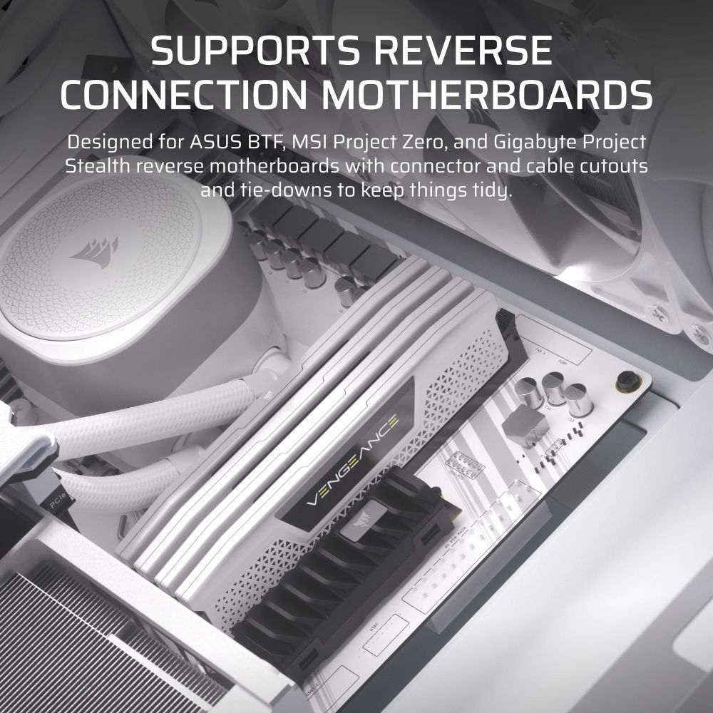 Fully compatible with reverse-connector motherboards from Asus, MSI, and Gigabyte, the FRAME 4000D eliminates visible cables for a pristine interior. A dedicated cable shroud keeps unused wiring out of sight, while the included GPU anti-sag arm prevents graphics card flex and protects your PCIe slot.
