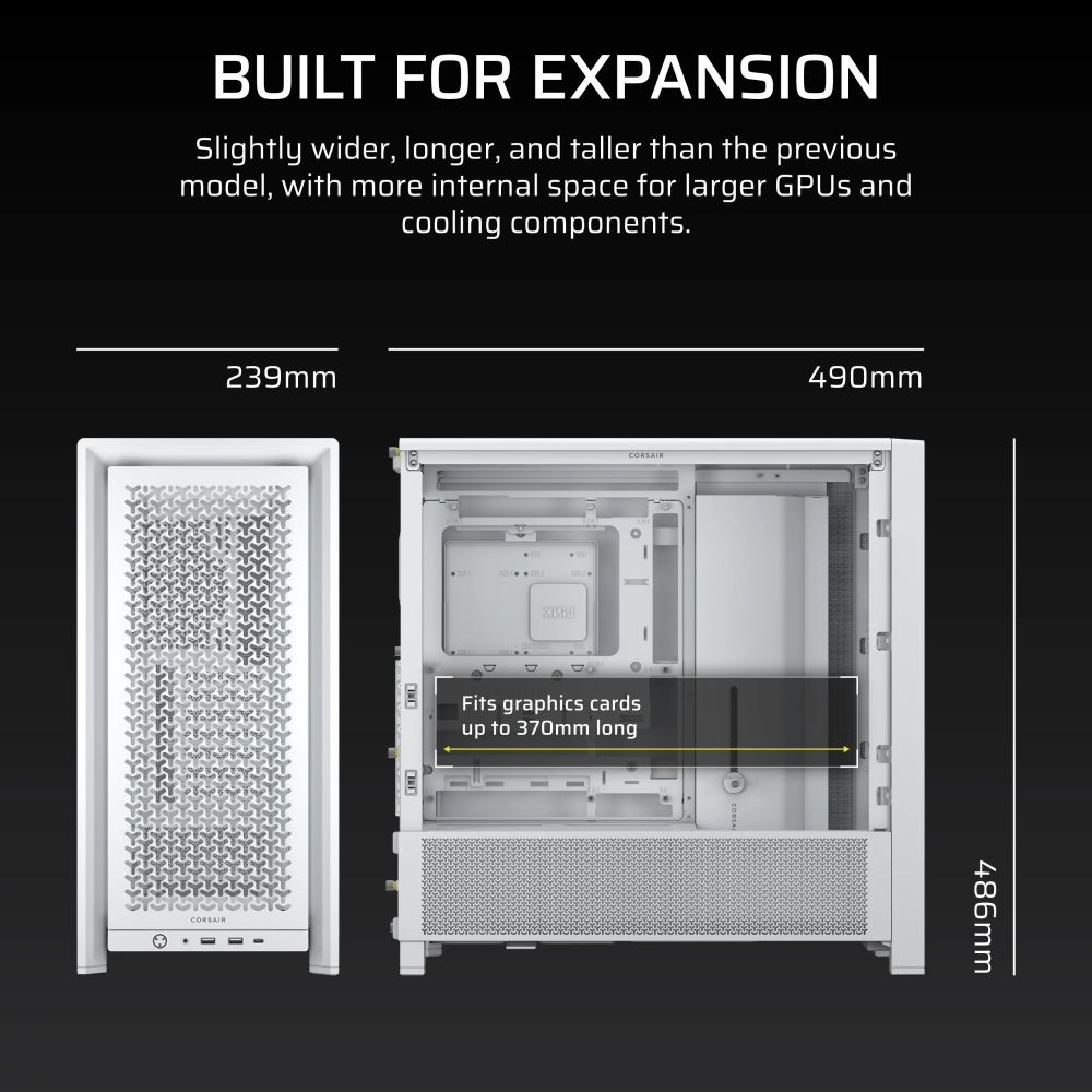 The Corsair FRAME 4000D Midi Tower White is a high-performance gaming chassis built for custom cooling, modular upgrades, and clean builds. Designed for PC enthusiasts, it supports extensive radiator and fan configurations, making it ideal for demanding gaming and content creation setups.