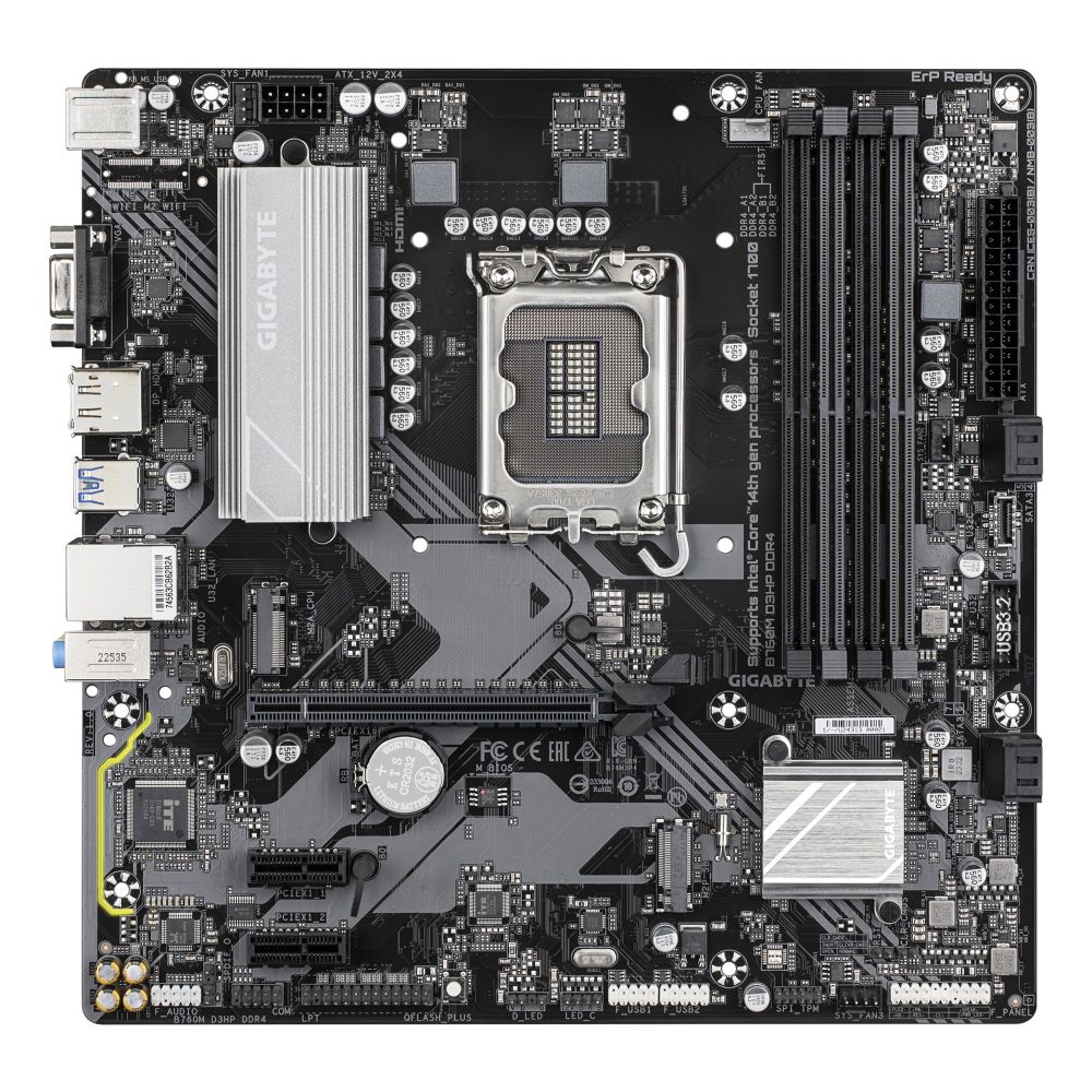 The GIGABYTE B760M D3HP DDR4 Motherboard delivers robust performance for Intel’s 14th Gen Core processors, featuring a 4+1+1 phase digital VRM design and support for DDR4 memory up to 5333MHz (OC). This micro ATX board combines modern connectivity with reliable stability for both gaming and professional applications.