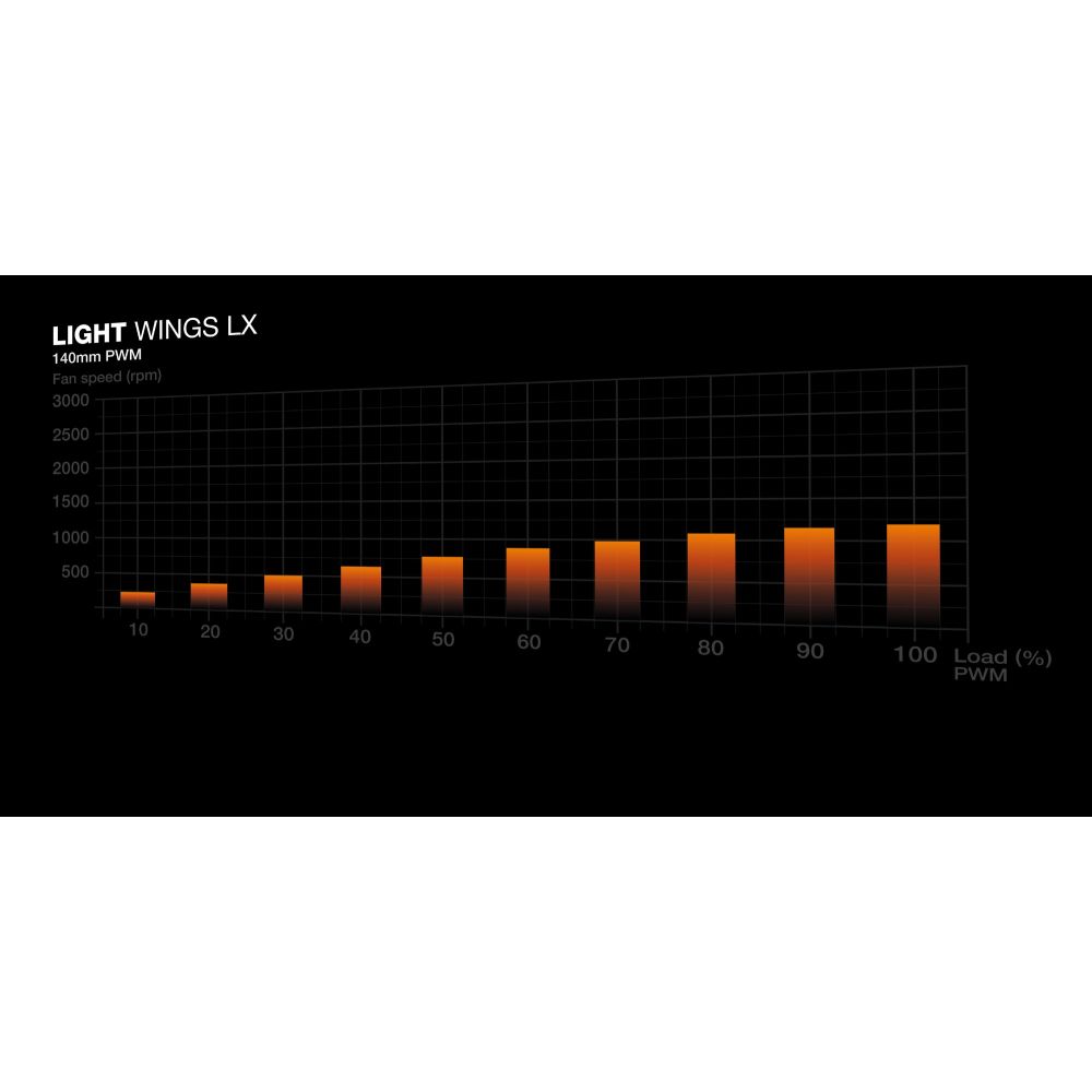 Engineered with precision, the Light Wings LX features an optimized fan frame outlet that minimizes air leaks and maximizes efficiency. The carefully designed seven-blade configuration delivers up to 95 m³/h of airflow while maintaining quiet operation at just 22.9 dB under full load. This makes it suitable for virtually any case configuration where both cooling performance and silence matter.
