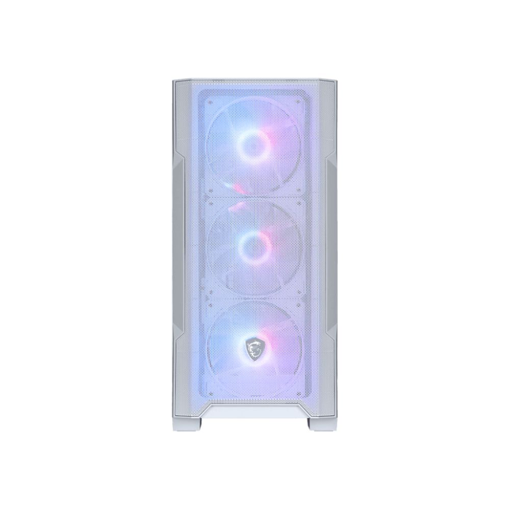 The MSI MAG Forge M100R Midi Tower Transparent, White is a compact gaming case designed for micro ATX and Mini-ITX builds, offering mesh front airflow, ARGB fan lighting, and tempered glass panels for a premium look. Ideal for UK gamers building high-performance systems in small spaces.