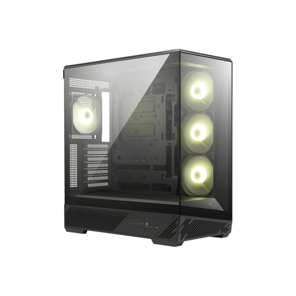 The MSI MAG PANO 130R PZ computer case Midi Tower Black delivers a bold, ARGB-ready chassis designed for gamers who want both performance and a striking visual showcase. With its 270-degree panoramic display, robust cooling support, and rotatable GPU bracket, this mid-tower case combines durability with high-end aesthetics.