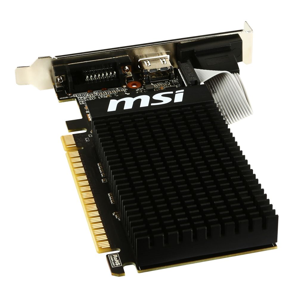 The MSI GF G 710 2GD3H LP is a low-profile, passive-cooled graphics card designed for small form-factor systems where quiet operation and minimal power draw are priorities. Built around the NVIDIA GeForce GT 710 GPU with 2 GB of GDDR3 memory, it delivers basic display output and light multimedia performance without the need for active cooling.