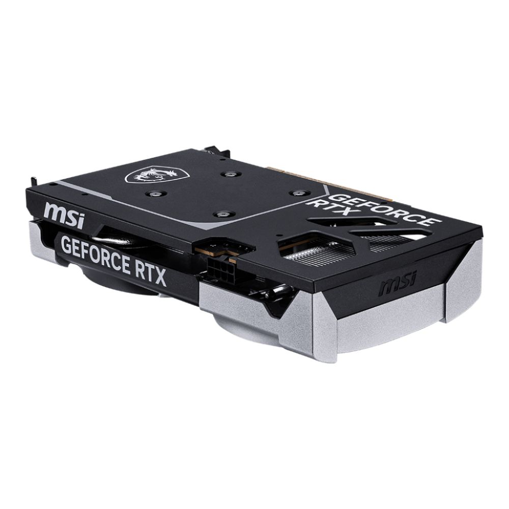 MSI’s TORX FAN 5.0 cooling technology keeps temperatures under control during extended gaming sessions. The dual-fan design with 12 cm fans provides efficient heat dissipation while maintaining quiet operation. The VENTUS 2X OC’s compact full-height/half-length form factor (120 mm x 41 mm x 197 mm) makes it suitable for smaller builds without sacrificing cooling performance. The silver finish and clean lines allow this card to fit seamlessly into any system build.