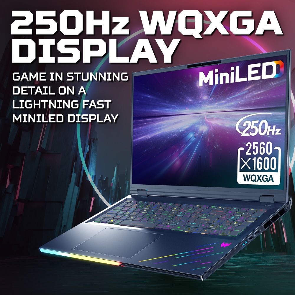 • 18-inch WQXGA IPS display with 250 Hz refresh rate, 1000 cd/m² brightness, and 100% DCI-P3 colour gamut