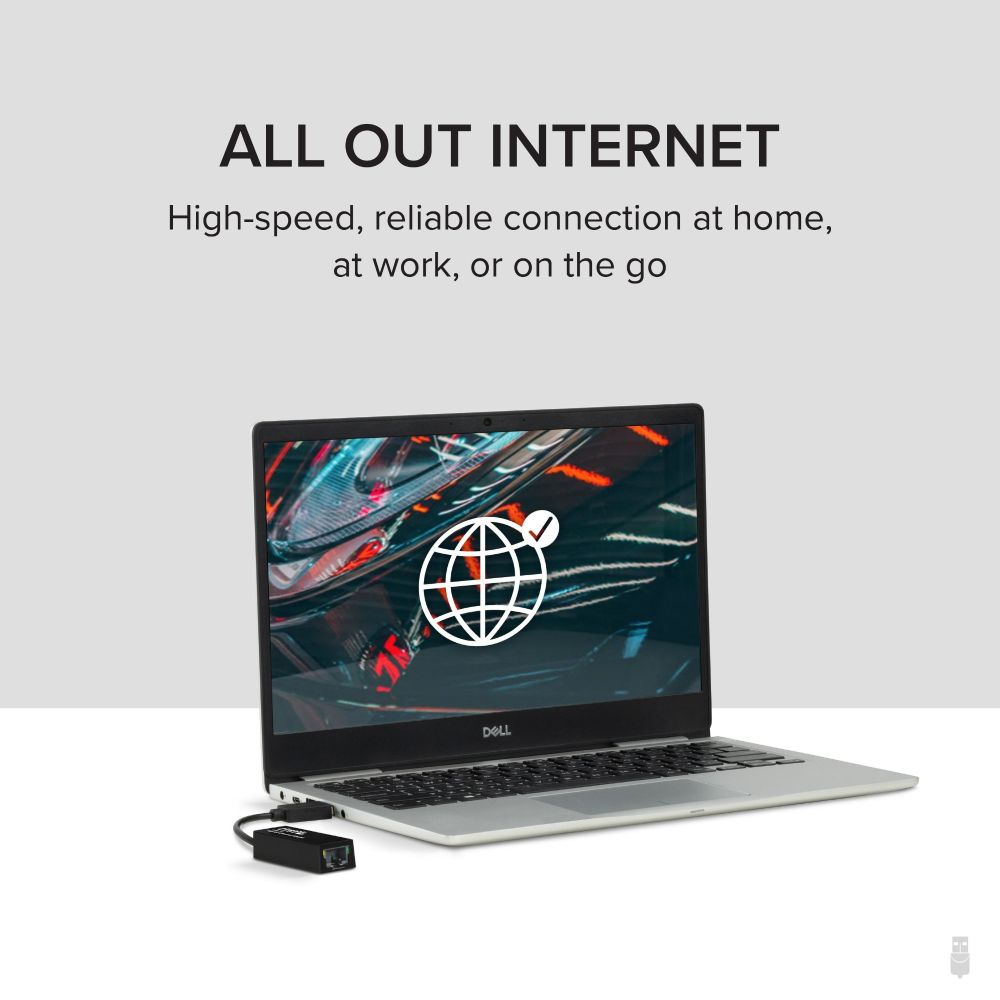 - USB 3.0 to Gigabit Ethernet adapter for wired network speeds up to 1000 Mbit/s