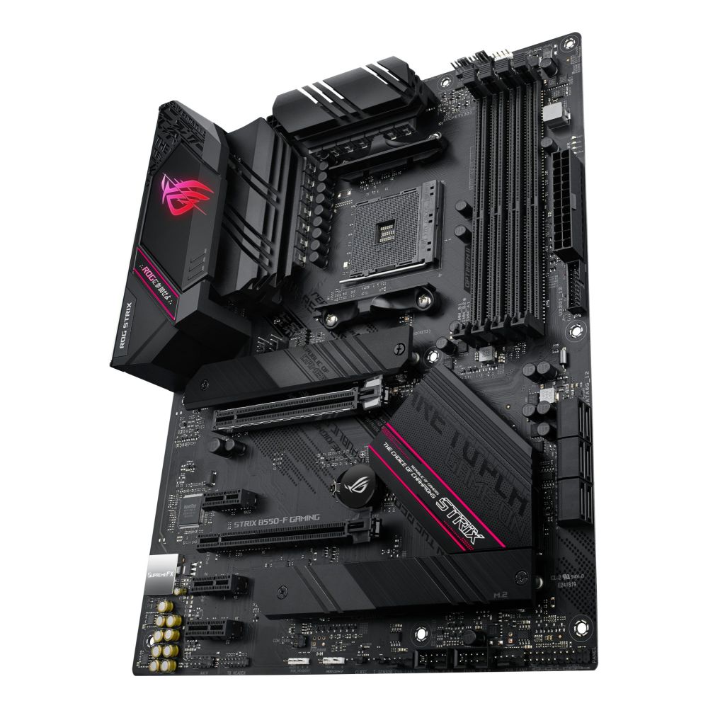 The ASUS ROG Strix B550-F Gaming AMD B550 Socket AM4 ATX motherboard delivers PCIe 4.0-ready performance for AMD Ryzen 3000 Series processors. Built for serious gaming and content creation, this ATX board combines robust power delivery, comprehensive cooling, and next-gen connectivity to handle demanding workloads with ease.