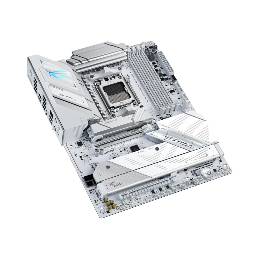 The ASUS ROG STRIX B850-A GAMING WIFI7 NEO AMD B850 Socket AM5 ATX motherboard delivers next-generation performance for AMD Ryzen 7000, 8000, and 9000 Series processors. Built with a sleek white PCB and powered by AI-driven technologies, this board offers exceptional connectivity, advanced cooling, and future-proof expansion for gamers, creators, and PC builders seeking premium performance.