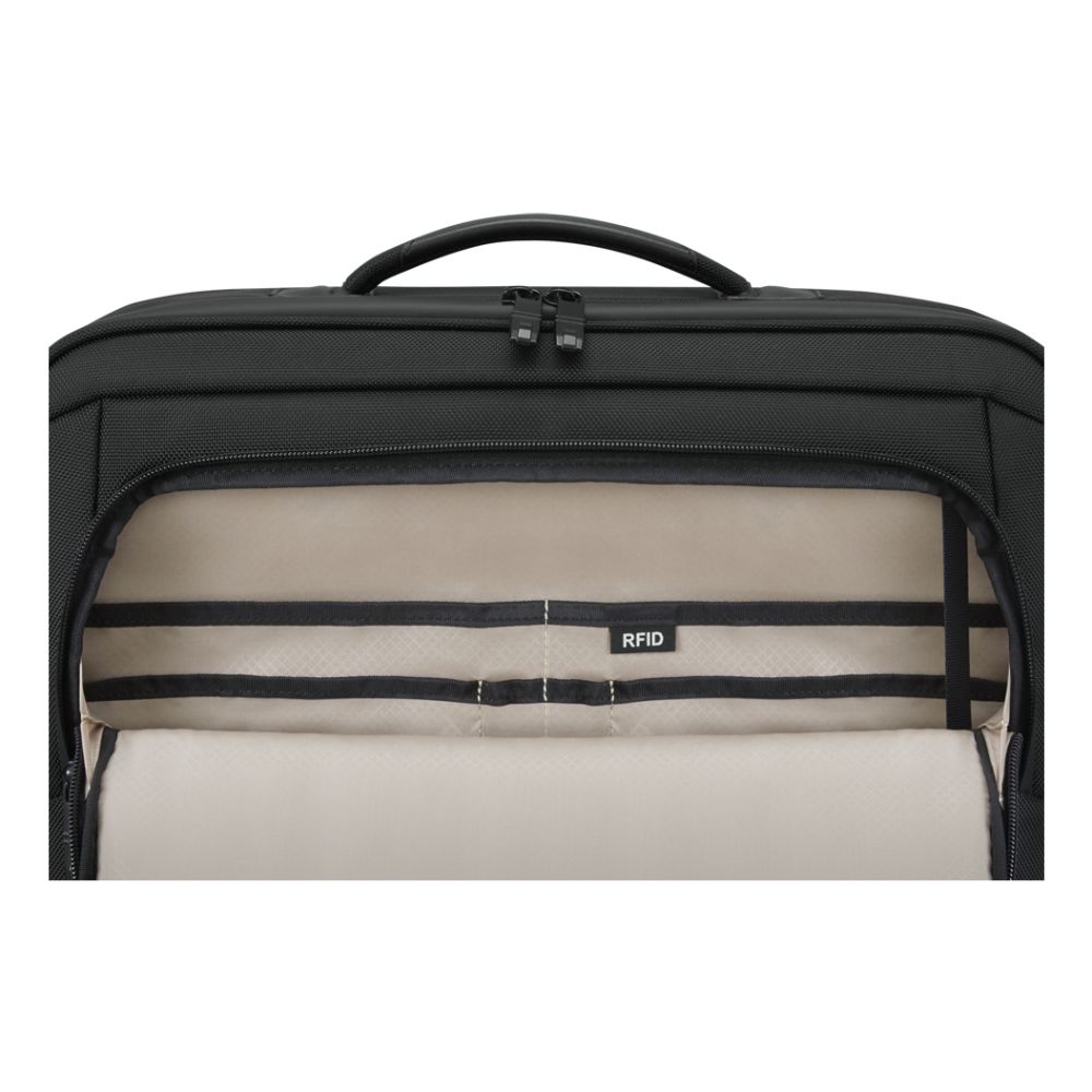 - Zipper closure with organised compartments for business essentials