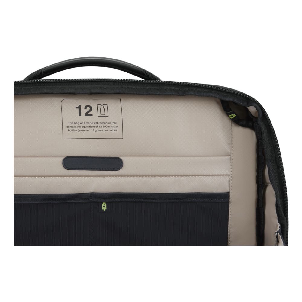 This toploader bag is made with 89% recycled materials. Choosing this case reduces environmental impact without sacrificing durability. The plastic construction is lightweight yet robust for daily commutes. However, the exact recycled plastic type is not specified. You should verify the material composition if this is a key factor for your procurement.