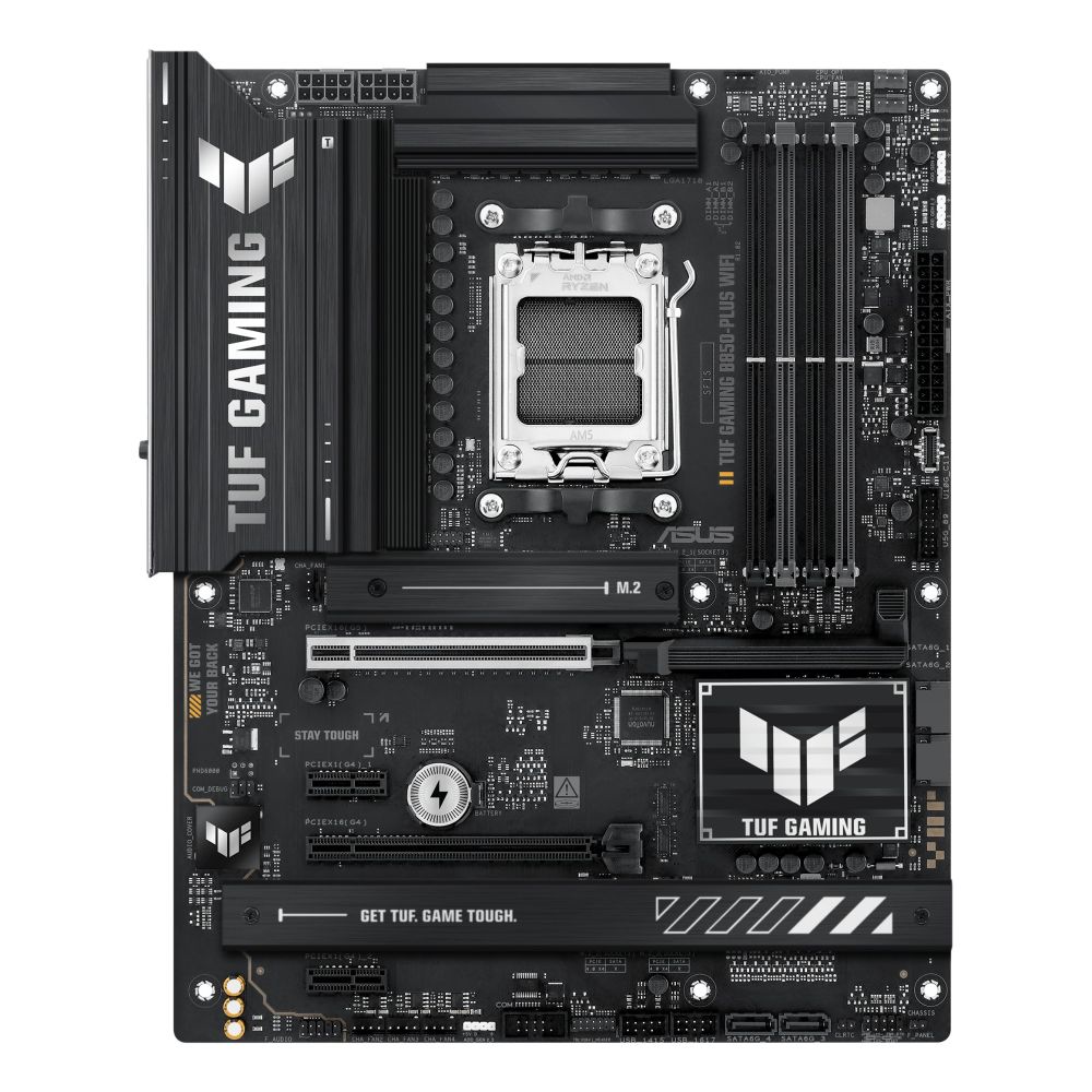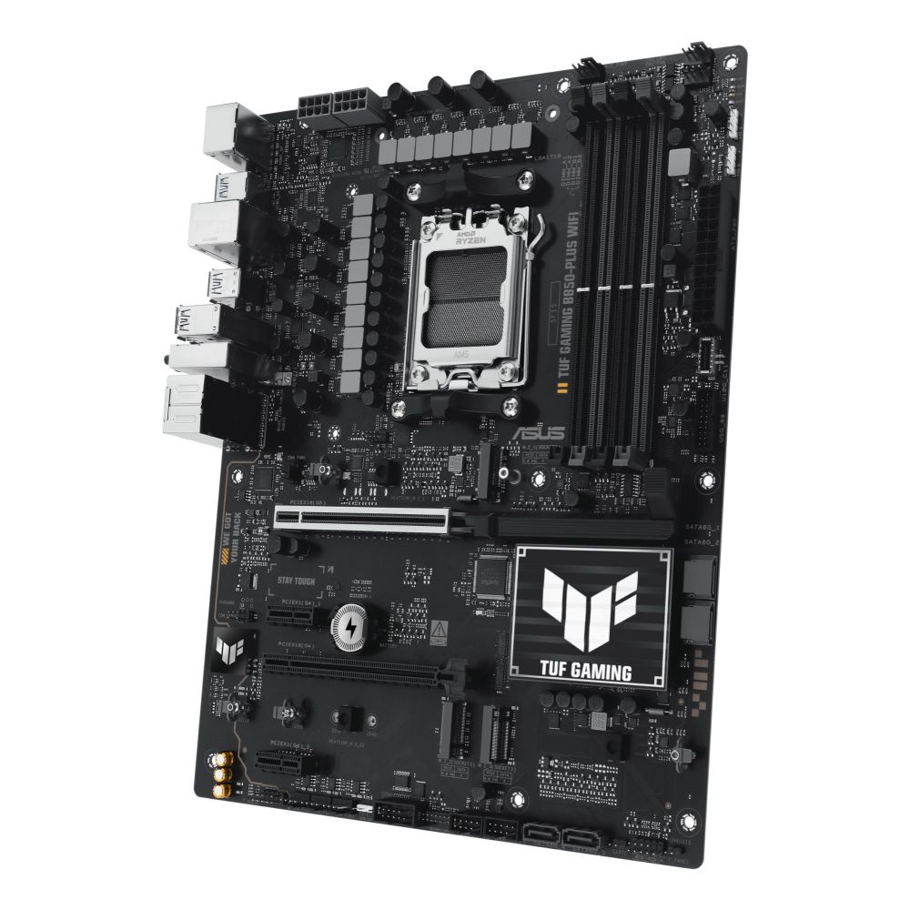 The ASUS TUF GAMING B850-PLUS WIFI is built for gamers and creators who demand rock-solid stability and future-ready performance with AMD Ryzen 7000, 8000, and 9000 Series processors on the AM5 platform.