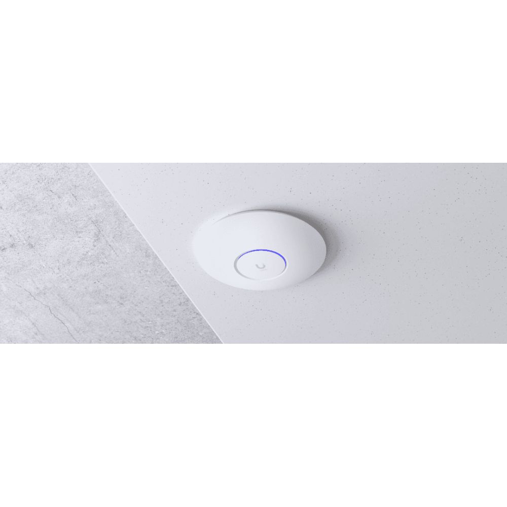 Installation is straightforward thanks to the included mounting kit and ceiling placement design. The U6+ supports Power over Ethernet, eliminating the need for separate power cables and simplifying cable management. Once installed, manage your network through Ubiquiti’s intuitive software interface, allowing you to monitor performance, configure settings, and manage connected devices from a single dashboard. The white polycarbonate and aluminium enclosure blends seamlessly into most environments while providing durability in demanding conditions.