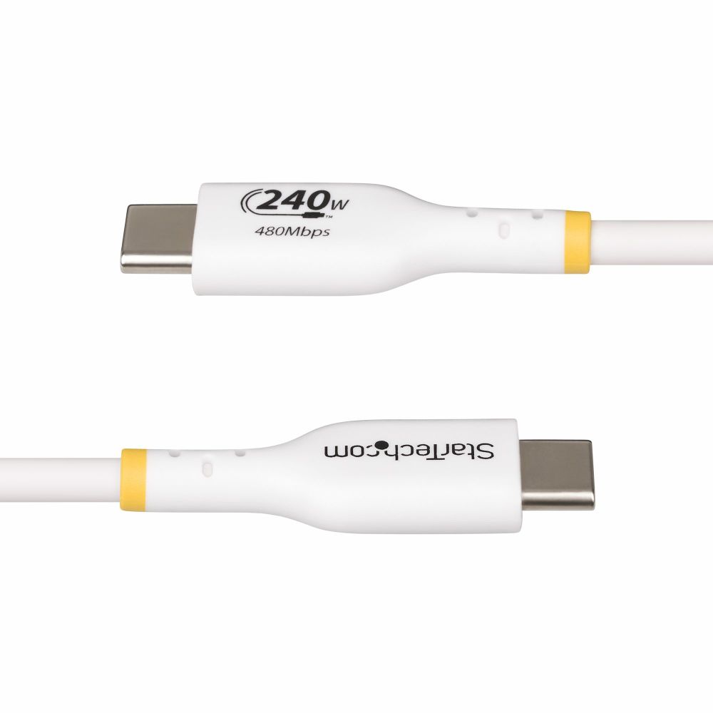 This StarTech.com 4m White USB-C Charging Cable, USB-IF Certified USB C Cable, 240W PD EPR, USB 2.0 Type-C Laptop Charger Cord, USB-C Data Transfer Cable, TPE Jacket is built for high-power USB-C laptops and devices. It supports USB Power Delivery 3.1 Extended Power Range. The cable delivers up to 240W and 5A for demanding workloads. The 4-metre length provides extra reach across larger desks and workspaces. Connector markings enable quick visual identification. This helps you select the correct cable for full 240W charging.