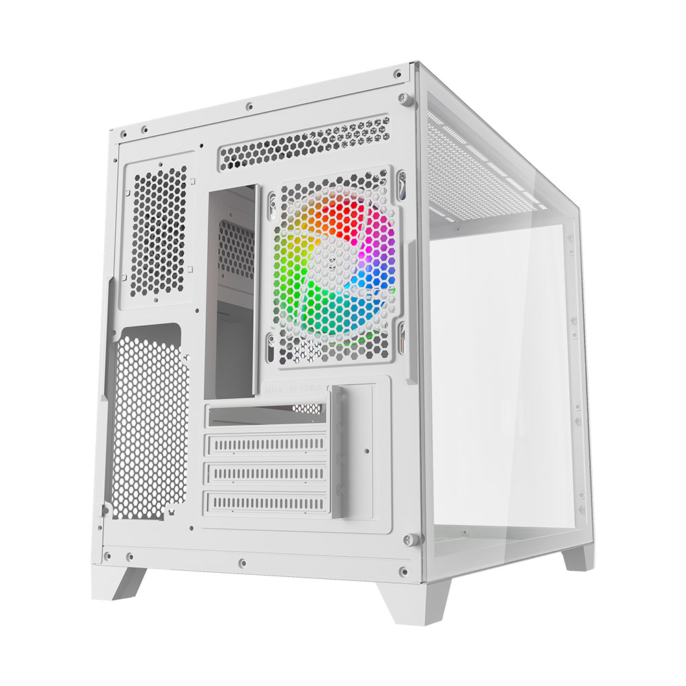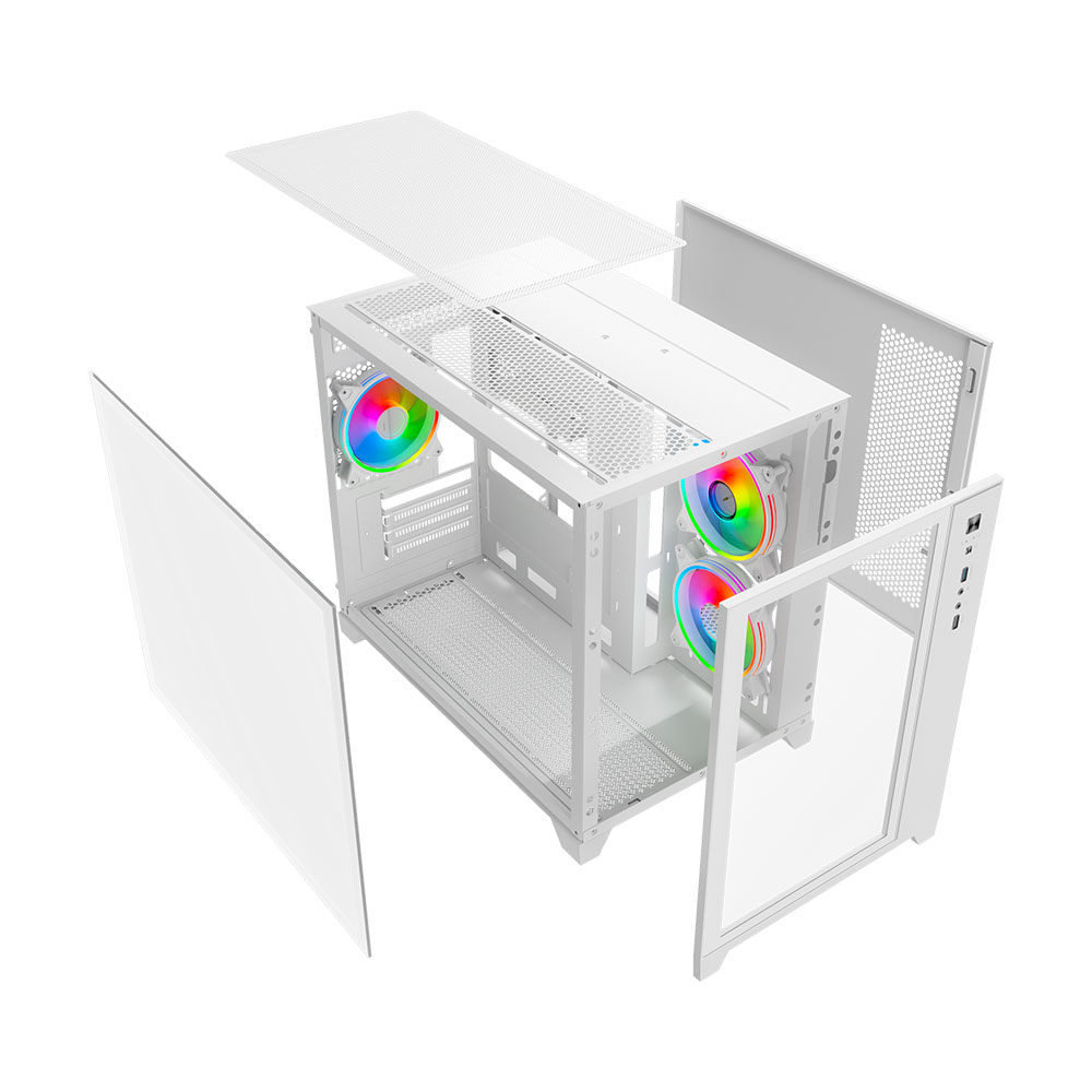 The Vida Akira V2 White is a stylish, compact PC case designed for Micro ATX and Mini-ITX builds. With its tempered glass side panel, ARGB lighting, and robust cooling support, it’s ideal for gamers and PC enthusiasts seeking both aesthetics and performance in a small form factor.