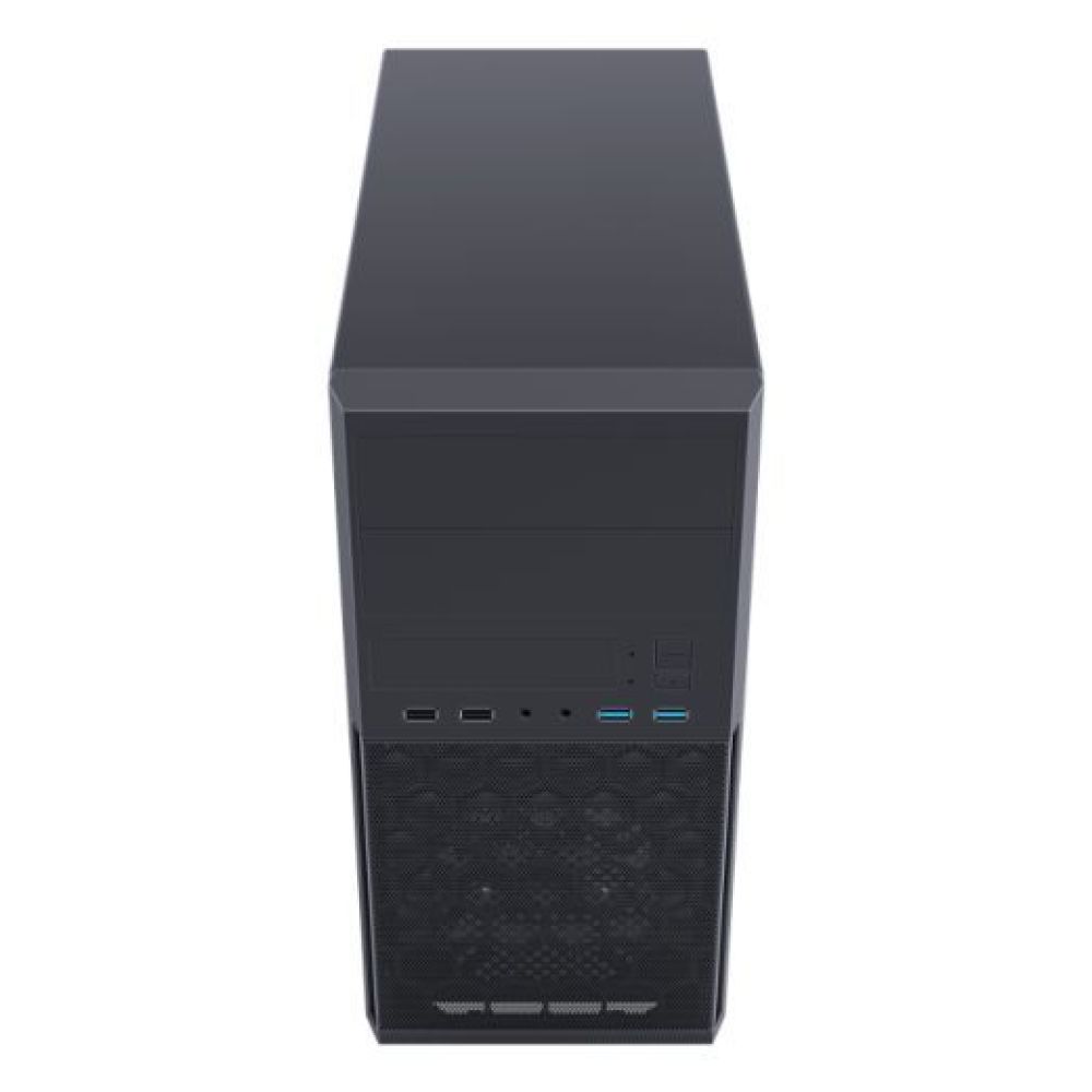 - Front I/O: 2 USB 3.2 Gen 1, 2 USB 2.0, audio in/out; PSU: ATX top-mounted