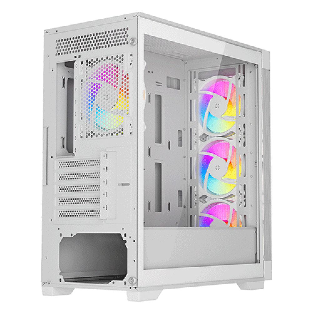 The Vida Zephyr V2 Tower White is a micro-ATX gaming case designed for UK enthusiasts who want striking ARGB lighting combined with excellent airflow and build flexibility. It offers a sleek white finish with tempered glass panels and pre-installed ARGB fans, making it ideal for gamers and creators seeking both performance and visual impact.